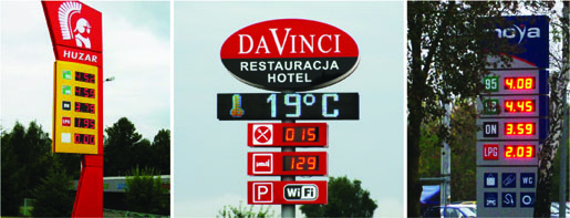 Wypełnienia cenowe zabudowane plexą oraz obudową z ramką aluminiową i wysokiej jakości tworzywami sztucznymi.Zapewnia stopień ochrony IP54. Gwarantuje to oprócz wysokiej ochrony na warunki atmosferyczne łatwość utrzymania wypełnień w czystości.